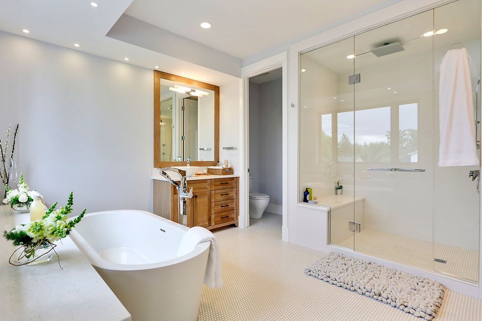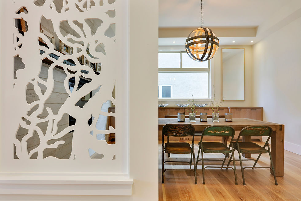The energy within this executive duplex overlooking the downtown core, is casual and gracious within the bustle of YYC. Monochromatic palette accented with hues of mist and twilight give the spaces an easy going casual, feel. The use of drift wood, pitted metal, hand blown glass and masses of tile creates a harder edged industrial feel mixed with cooler surfaces. Functional and simple. The "Beach Glass" hand blown orb collection that floats in the Living Room was custom designed art installation to set the tone and connection to the beach.